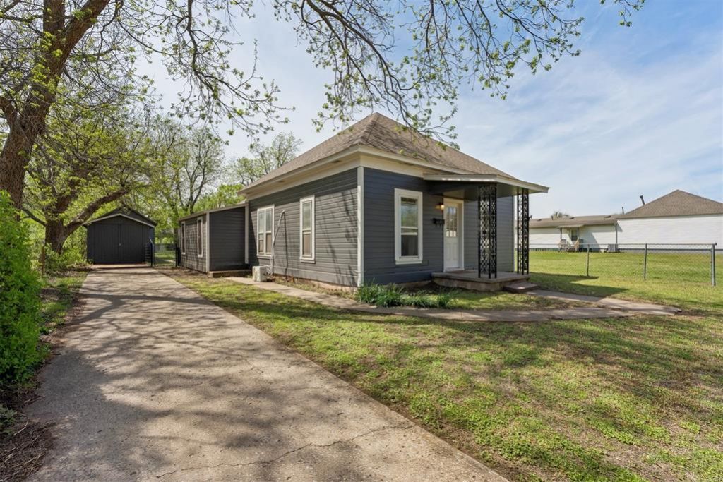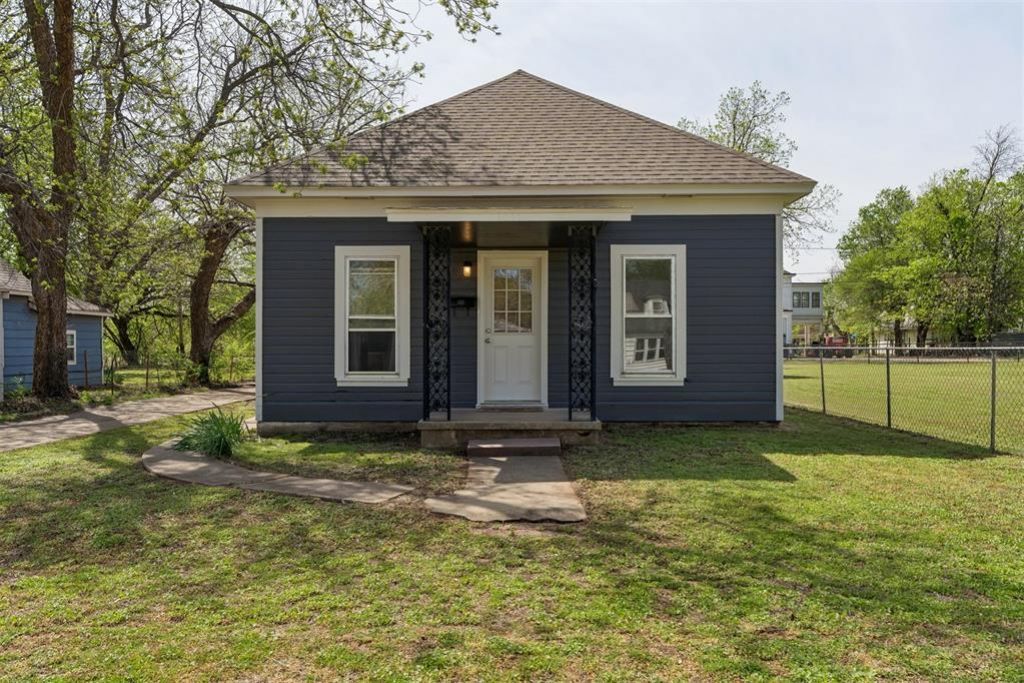 Charming and full of character, this 3-bedroom, 1-bath home offers a great blend of updates, functionality, and flexible space. Fresh exterior paint gives it standout curb appeal, while inside you'll find warm wood flooring and a comfortable, inviting layout. The living area flows easily into the kitchen, which features great counter space, custom wood cabinets, open shelving, and a practical setup for everyday living. A new mini-split heat and air system provides efficient, customizable comfort year-round. There is washer and dryer hookups ready to go! One of the standout features is the additional space off the kitchen- it is either the 3rd bedroom or a perfect space for a second living area, hobby room, home office, or playroom. Make sure you checkout the hidden hatch to the awesome basement, perfect for safety during Oklahoma storms. Step outside to a spacious backyard with both a detached garage and a separate shop, offering endless possibilities for storage, projects, or business use. With functional updates, versatile spaces, and plenty of room to make it your own, this property is a great opportunity for homeowners or investors alike.