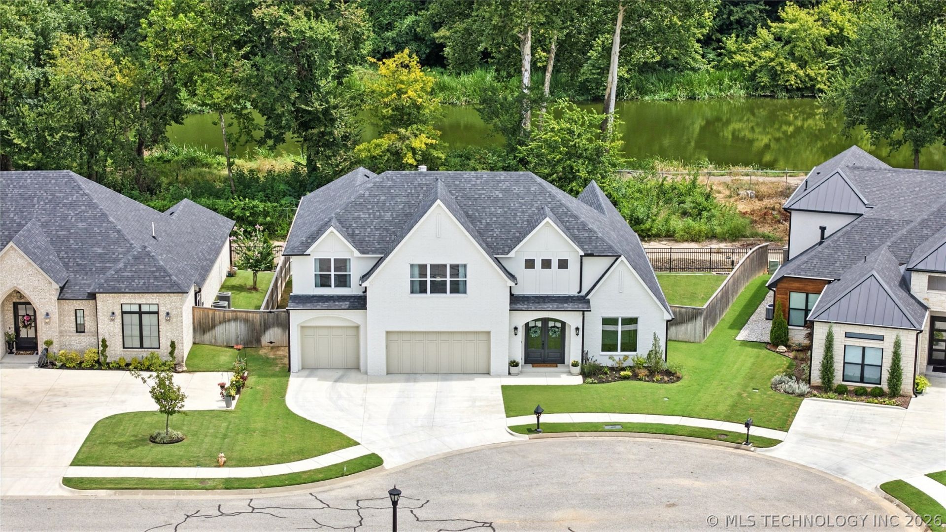 Timeless design, beautiful natural light, and peaceful views. Tucked away behind the gates of Riverview Park Estates; Jenks Southeast schools! Soaring ceilings and beautiful natural light run throughout this better-than-new home. The home features a flexible floor plan with plenty of options to suit your needs. The main floor boasts an office, living room open to eat-in kitchen with a massive walk-in pantry, primary suite, powder bath, drop zone mudroom plus a built-in storm shelter! An open game room, three bedrooms, two full bathrooms and a bonus room with a closet that could be used as a second home office or fifth bedroom upstairs. Covered outdoor living with a fireplace, retractable screens and plenty of space for a lounging and entertaining. Charming crushed gravel patio with a garden and additional space to enjoy nature all backing to the private pond in the adjacent neighborhood's reserve area. Enjoy private, gated access plus a community pool.