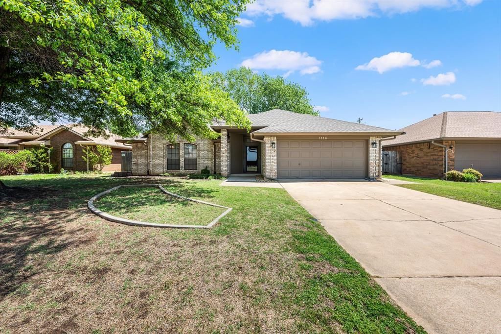 Welcome home to this warm and inviting property in Park Lane Estates at 1116 Earl A Rodkey Drive, perfect for first-time buyers and growing families! Featuring an open concept layout, the spacious living area includes a cozy corner brick fireplace and durable vinyl flooring that runs throughout the main living spaces for easy maintenance and everyday living. The dining area flows seamlessly into the kitchen and living room, with a sliding glass door that opens to the backyard patio, ideal for relaxing, grilling, or entertaining friends and family. The kitchen features a new electric range, a pantry, and a functional layout that makes cooking simple and convenient. The primary suite offers a comfortable retreat with a private bathroom, complete with dual vanities, two closets, a soaking tub, and a separate shower, giving you plenty of space to unwind and stay organized. The secondary bedrooms are generously sized, providing flexibility for guests, a home office, or growing households. Step outside to enjoy the open patio and fully fenced backyard, perfect for pets or play. An irrigation system helps keep the lawn looking its best with minimal effort. The roof was replaced in 2018, offering added peace of mind for years to come. Located in the highly desirable Edmond School District and just minutes from shopping, dining, and major roadways, this home combines comfort, convenience, and value, making it a great place to start your homeownership journey. Also, a neighborhood playground. Welcome Home.