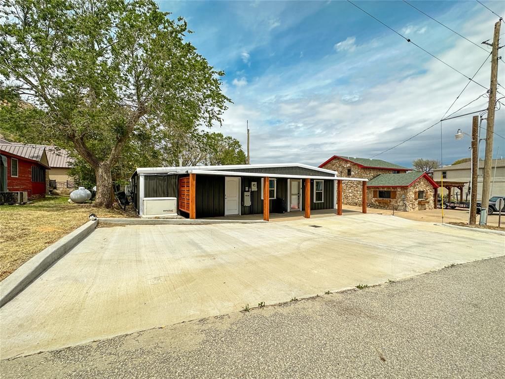 Enjoy lakefront living at its finest in the Hicks Mountain Cabins Boat Ramp Community near Altus/Lugert Lake and the Quartz Mountain State Park area. This 1,720 sq ft barndominium sits on a desirable corner lot and offers 3 bedrooms and 2 full baths, along with a spacious 344 sq ft front porch perfect for taking in breathtaking Quartz Mountain views and nearby sandy beaches. Built with durable all-metal construction, this home features hurricane impact windows, a Generac 22KW whole house generator, Vivint security system, two mini-split systems, tankless hot water heater, and a 500-gallon propane tank. The interior includes a functional layout with large walk-in closets, a front office space, and a dedicated laundry area. Kitchen appliances, as well as dining and living room furniture, are included, making this property move-in ready. Additional highlights include concrete parking and ceiling fans throughout. Ideal as a full-time residence, vacation retreat, or investment opportunity, this property offers comfort, efficiency, and unbeatable lakefront views.