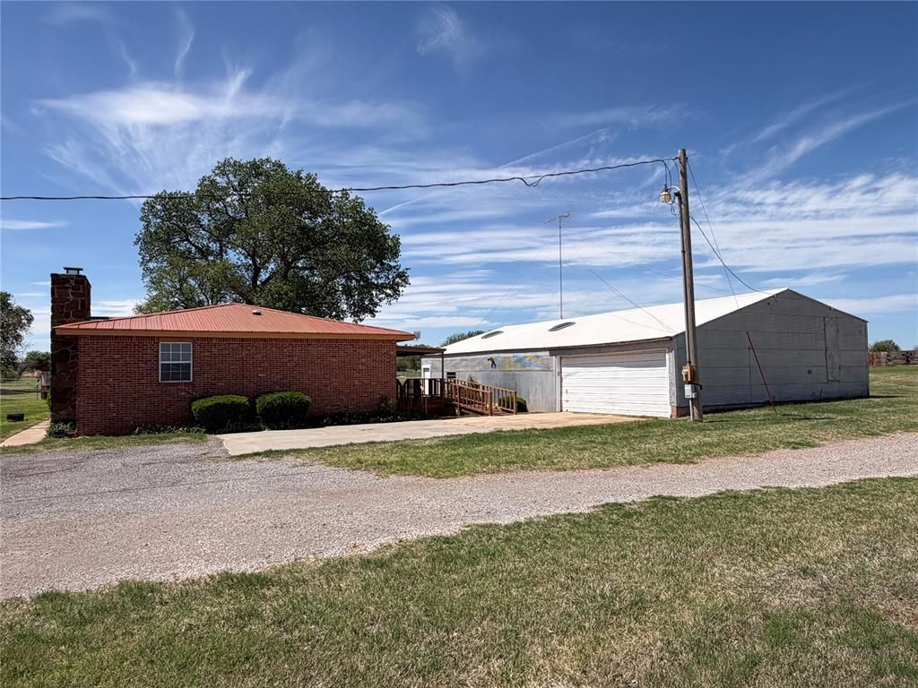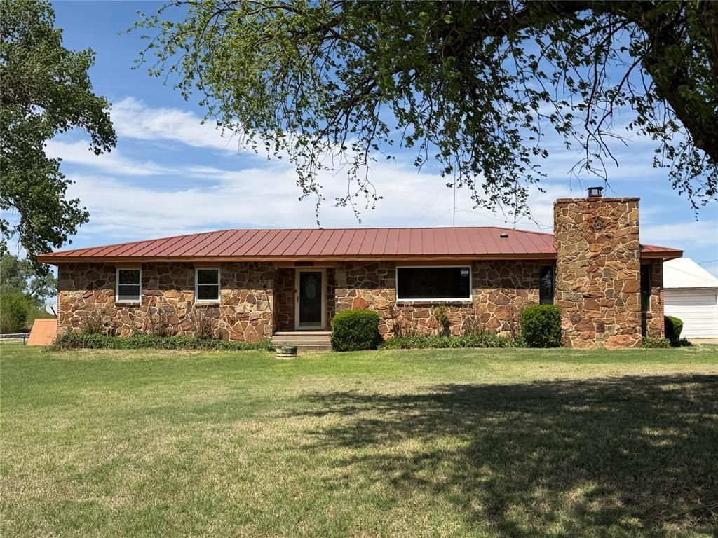 Welcoming & Tranquil Country Property on 3.76 Acres. Enjoy peaceful country living just 5 miles from town with this unique 3.76-acre property located in Washita County & within the Clinton School District. The primary home (1,908 SF) is a charming rock & brick home featuring a huge living area with a floor-to-ceiling rock fireplace with insert, creating a warm & inviting centerpiece. The spacious kitchen offers a gas cooktop & wall oven, abundant cabinet & counter space, & a large breakfast bar. The adjoining dining area easily accommodates an 8-person+ table, making it ideal for gatherings. The open kitchen & dining area flow into an oversized mud room with additional cabinetry & a utility sink. Laminate wood-like flooring is in all wet areas, with carpet in the living room & bedrooms. Bedrooms are generously sized, with the primary suite offering a half bath & walk-in closet. Guest bedrooms provide excellent closet space as well. Step outside to a large, covered patio with a wood deck & ramp, leading to a 40x60 two-car garage/barn, perfect for storage, hobbies, or livestock needs. The property has rural water, plus a water well for the grounds, and is fully enclosed with white pipe fencing. Bonus Income Opportunity with a second residence, currently rented for $550/month. The second home is a 14X72 Solitaire manufactured home offering 2 bedrooms & 2 baths, with updated plumbing, flooring throughout & new composition roof in 2025, well-maintained & in great condition. Note: The trailer's water supply is connected to the main house. ***Listing agent is the owner of the property.