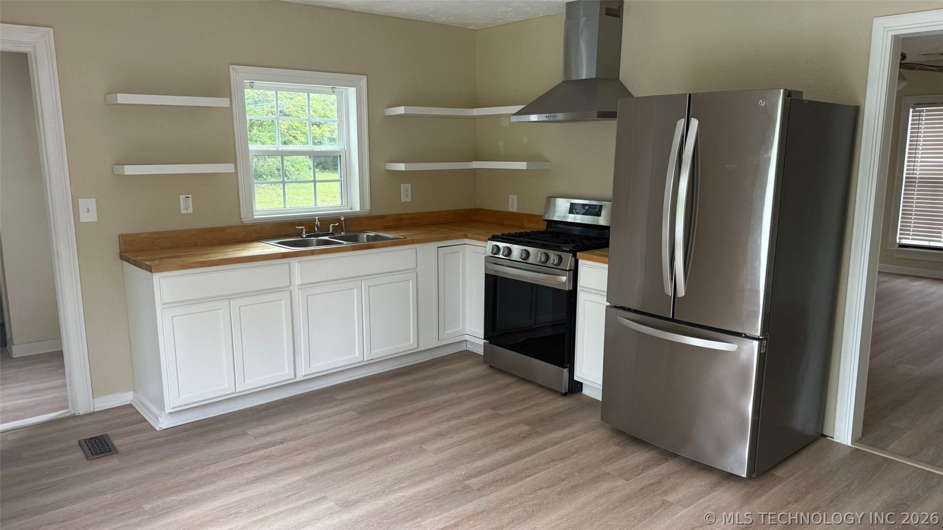 Comfortable and move-in ready, this three- bedroom and two bath home sits on a desirable corner lot east side of town. The home features central heat and air with a mini split in the primary bedroom for enhanced comfort. Recent updates include interior and exterior paint, new flooring throughout, and updated bathrooms and updated kitchen. A washer and dryer hookup adds convivence. New appliances.