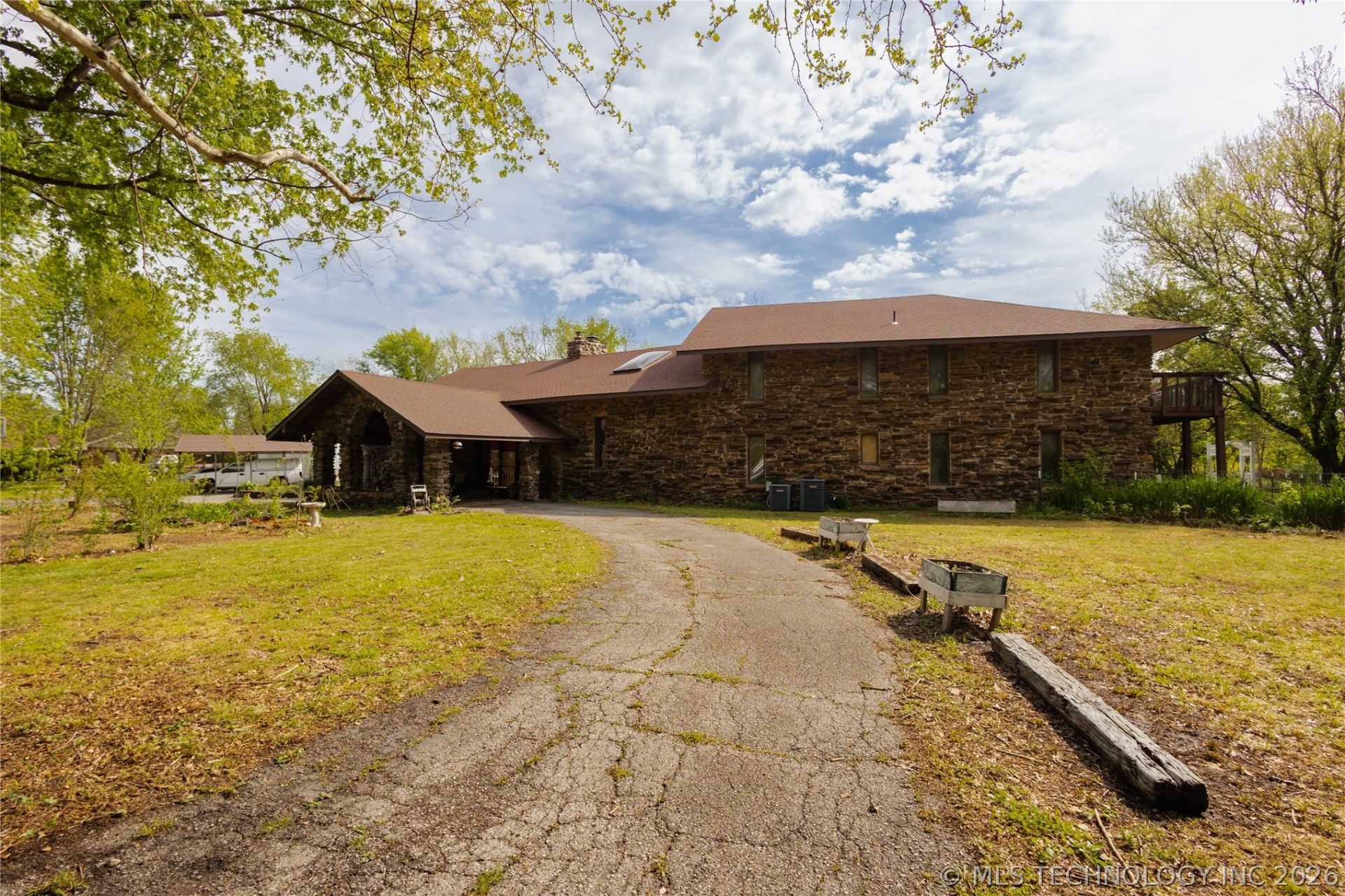 Discover a residence that is truly one-of-a-kind. Make it a forever home, bed and breakfast, or Air BNB. This expansive, custom-built stone home was designed by an architect to blend natural elements with grand-scale living. Spanning over 6,000 square feet (CH) of interior space, every corner of this property radiates character, from its rugged stone exterior to the light-drenched interior. Includes central wood-burning fireplace serves as a stunning focal point, grounding the open living space with warmth and artisan craftsmanship. It even has a pizza oven. It has an INDOOR WATERFALL cascading down the stone for that natural, soothing nature feel. It is absolutely incredible. Towering ceilings and a perfectly placed skylight ensure the home is bathed in natural light, highlighting the unique architectural lines. Offering unparalleled privacy, this home features 2 master bedrooms with full bathrooms, and 3 more bedrooms with own private half bathroom. The nearly 1-acre lot is a gardener's dream, featuring established fruit trees and a lush variety of perennial vegetables and plants. On top of it all, it has an outdoor fountain! This home is absolutely incredible and a must see.