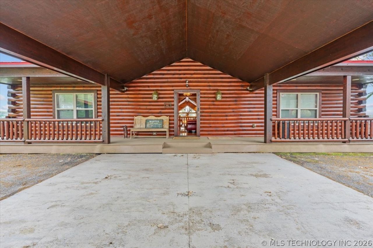 One of a kind log cabin on Elk River in Grove, OK. Waterfront with large enclosed boat dock with two boat slips and large swimming dock. Very uniquely decorated and comes partially furnished with custom made furnishings. This is an absolute dream home with everything you are looking for in a log cabin/lodge look. Also has a detached garage with an RV hookup beside it.